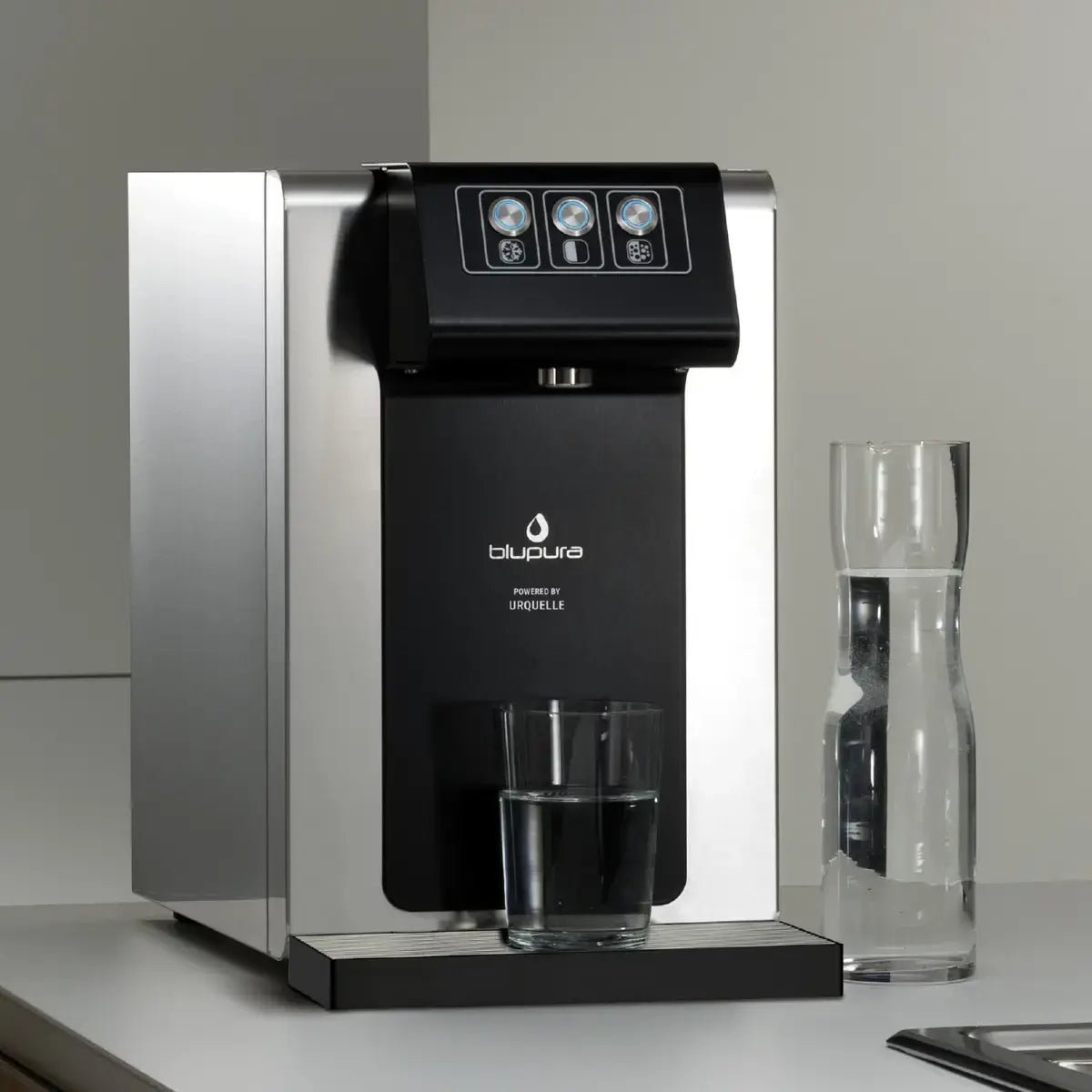Diese Auftischfilteranlage ist insbesondere für Unternehmen, ob im Sozialraum für die Mitarbeiter oder auch als Spender im Kundenbereich vorgesehen.