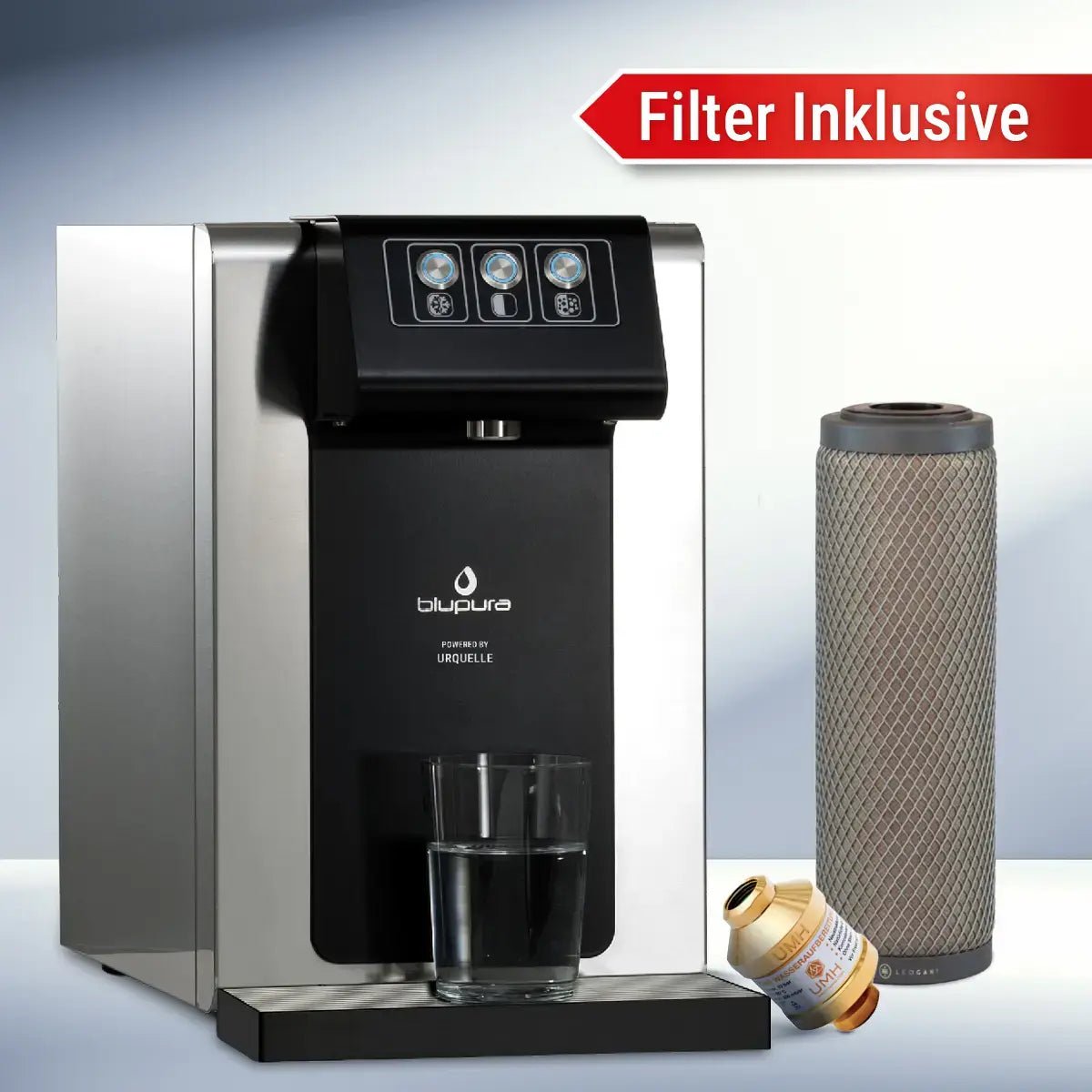 Neuestes Design und bewährte Technik vereinen den Urquelle Saphir Wasserspender zu einer Neuheit im Bereich der leitungsgebunden Wasserspender.