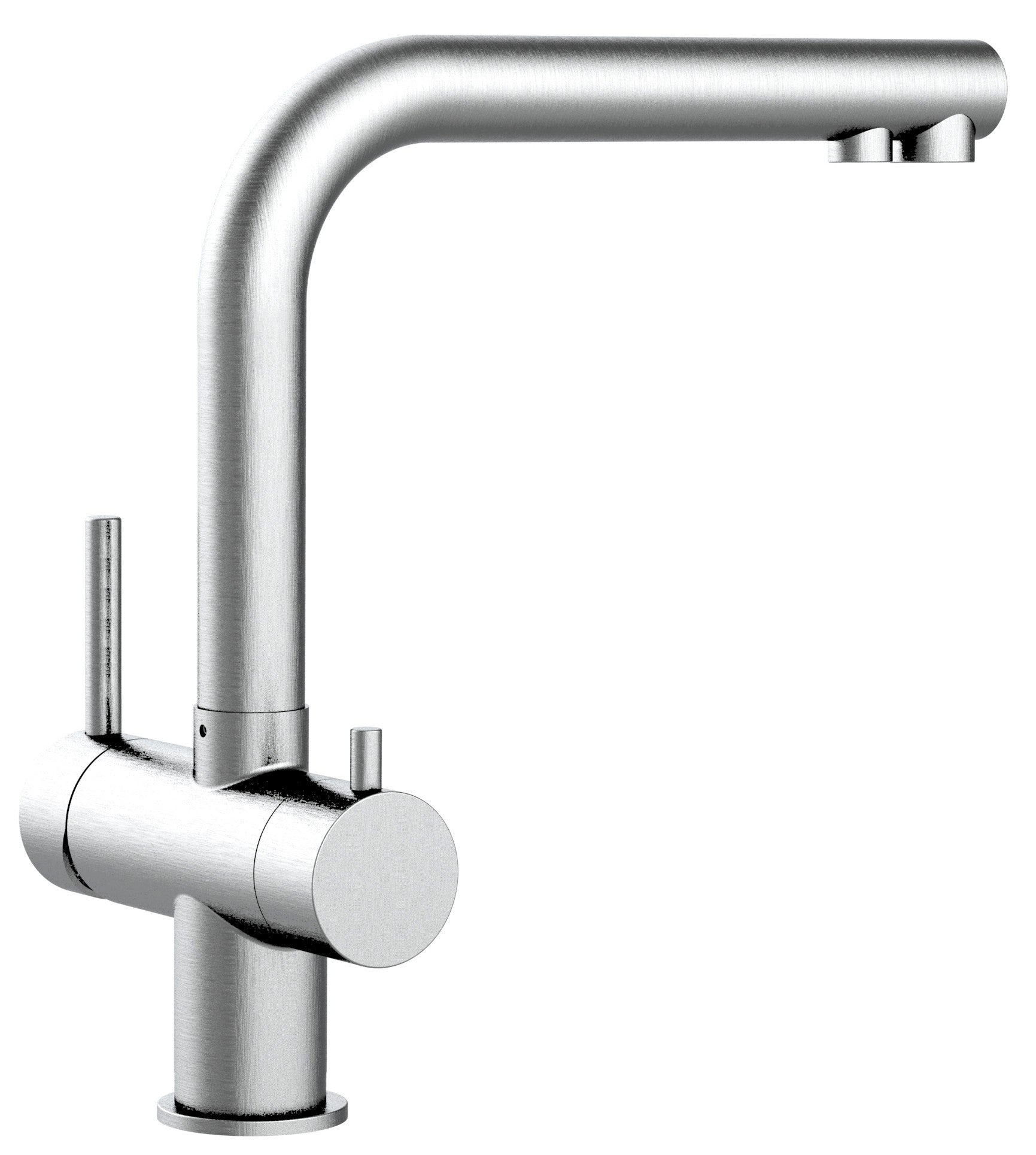 Vizio Niederdruck 3 Wege Wasserhahn Küchenarmatur, Edelstahl Massiv, 360° schwenkbarem L-Auslauf, Gebürstet