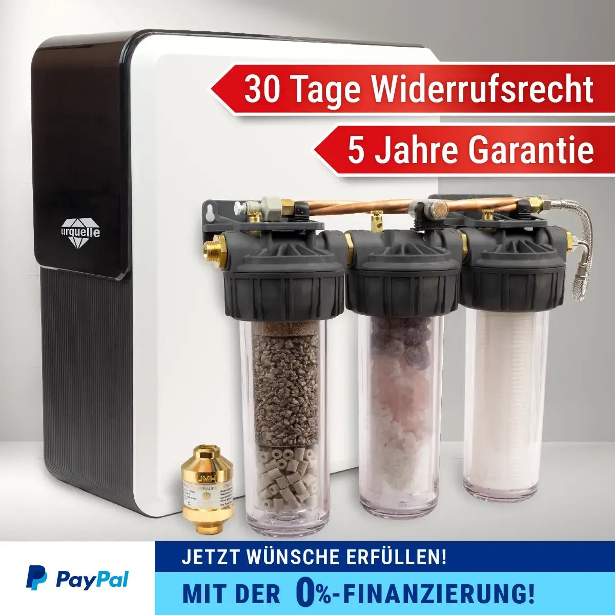 Darüber hinaus übernimmt Urquelle® keine Gewährleistung bei Problemen, die aus einer fehlerhaften Selbstmontage resultieren können.